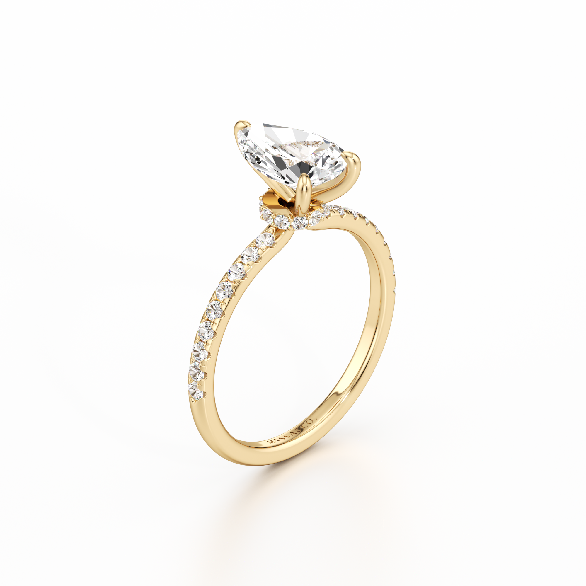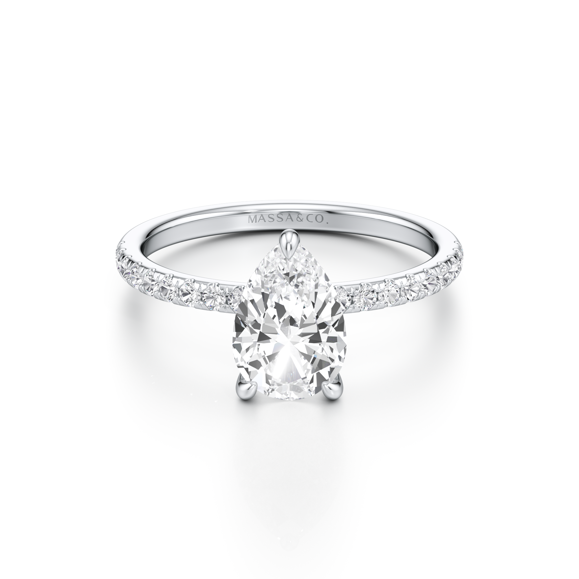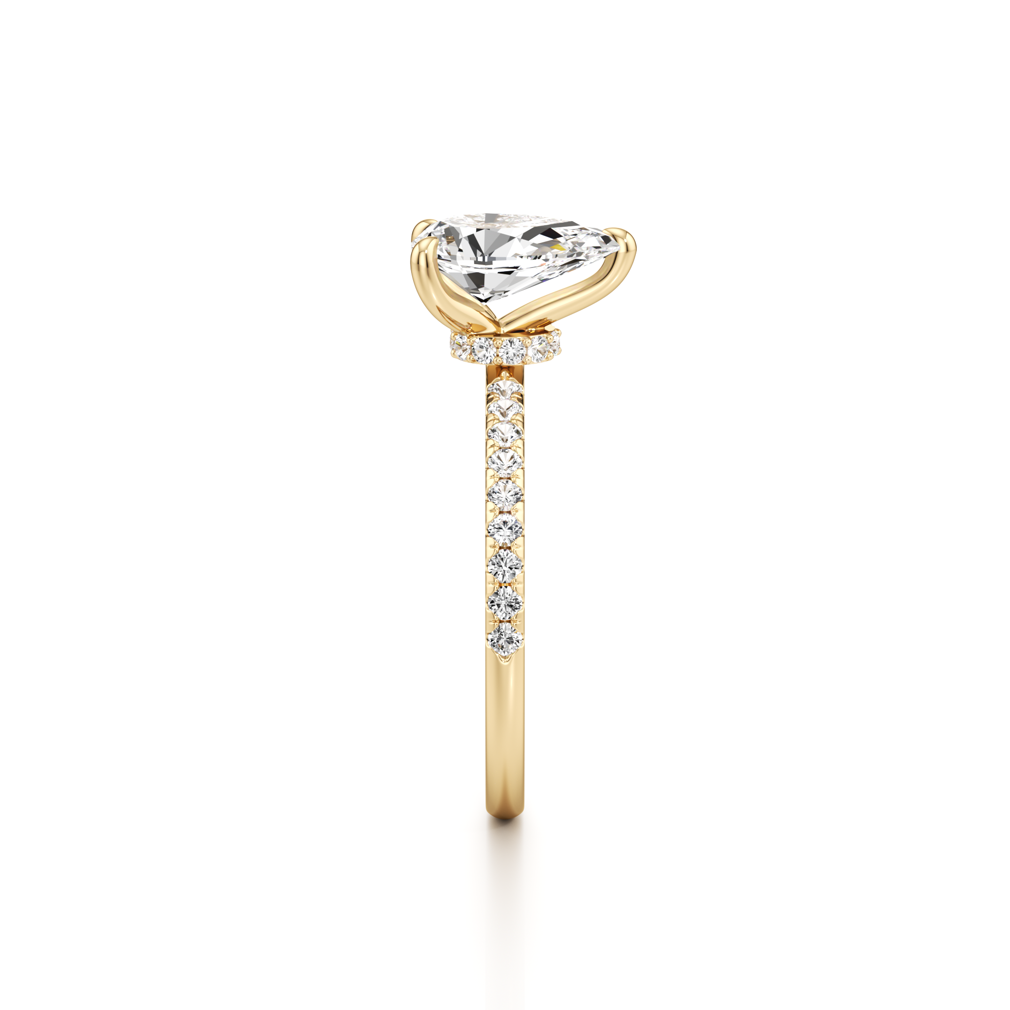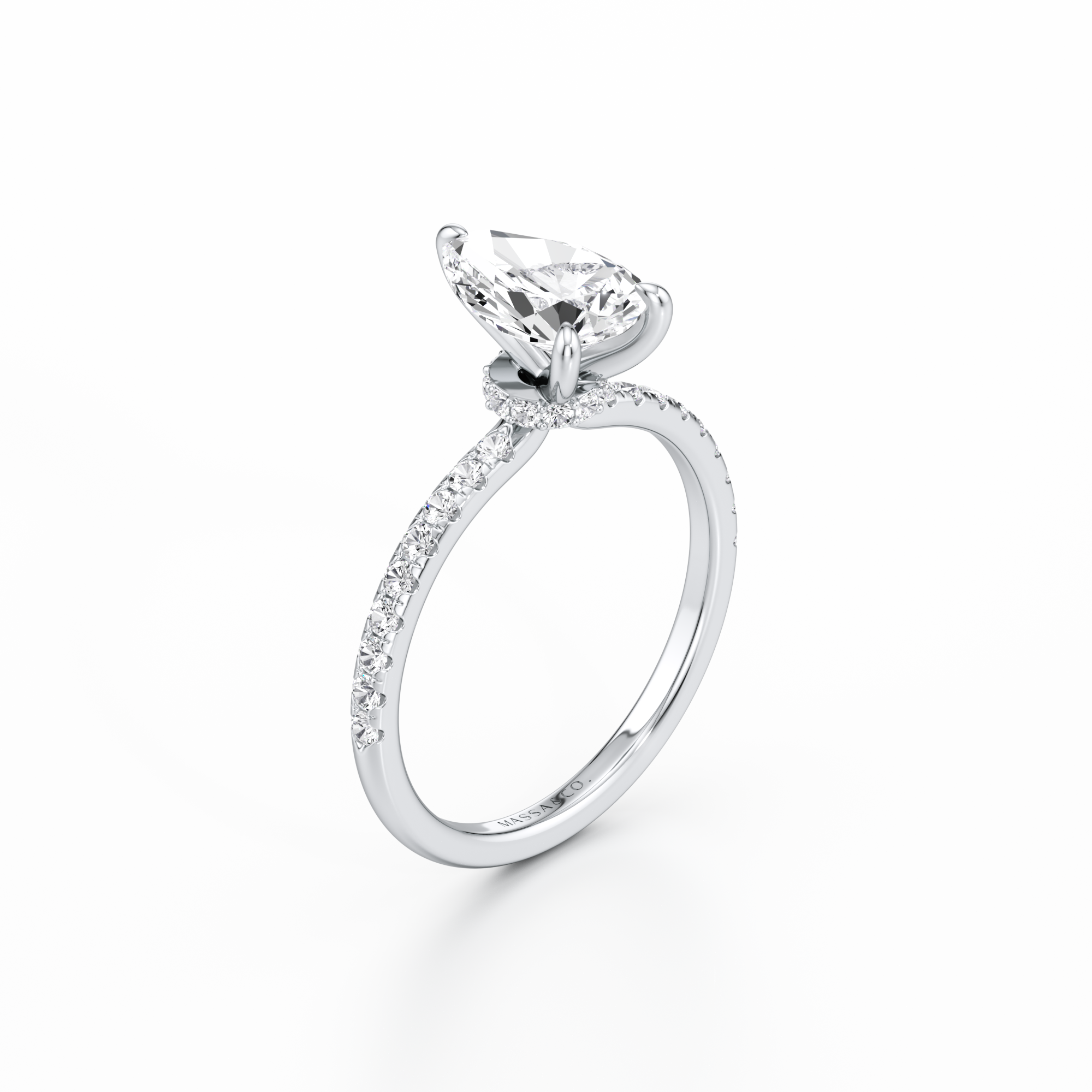 Pear-cut Secret Halo Engagement Ring with a Pavé Diamond Band