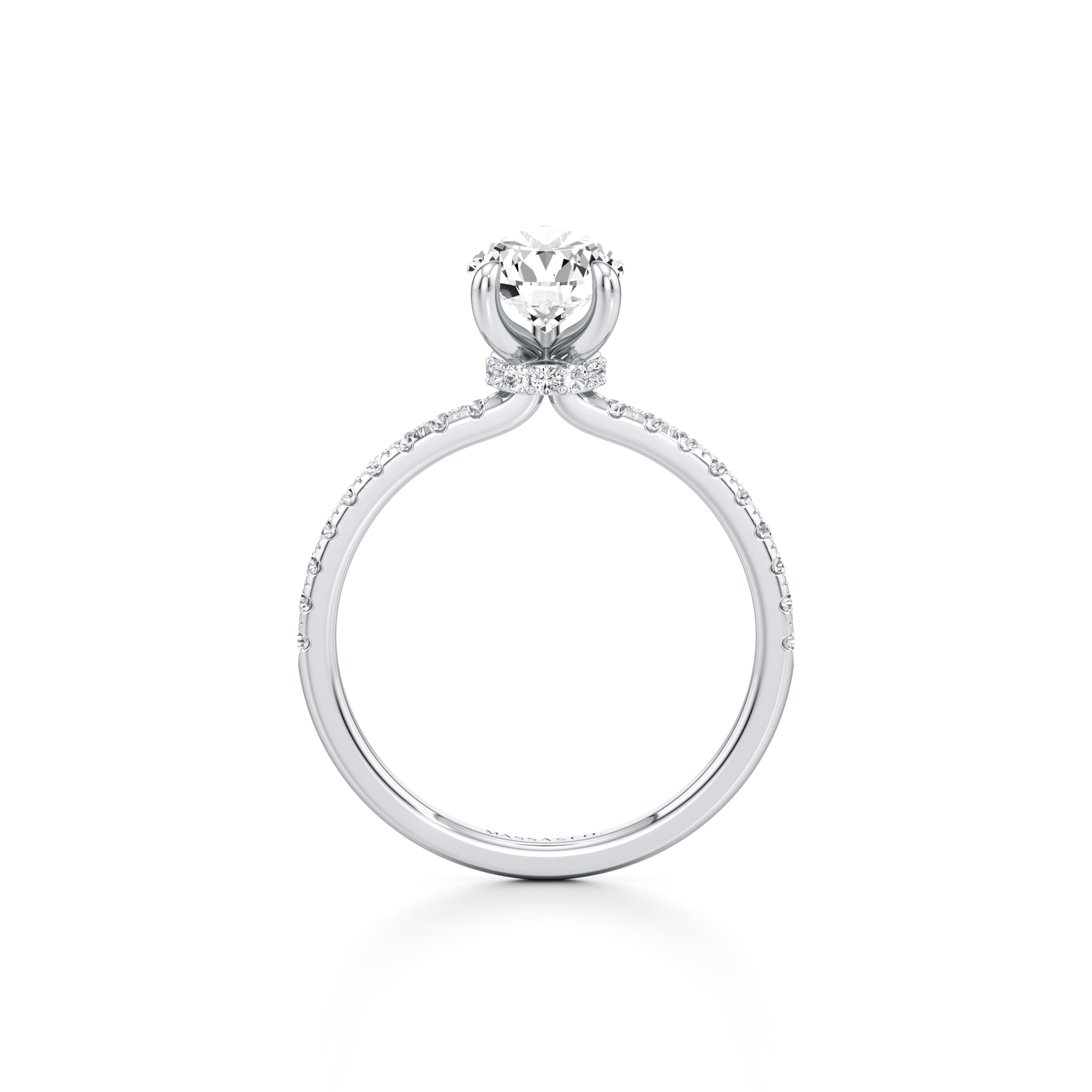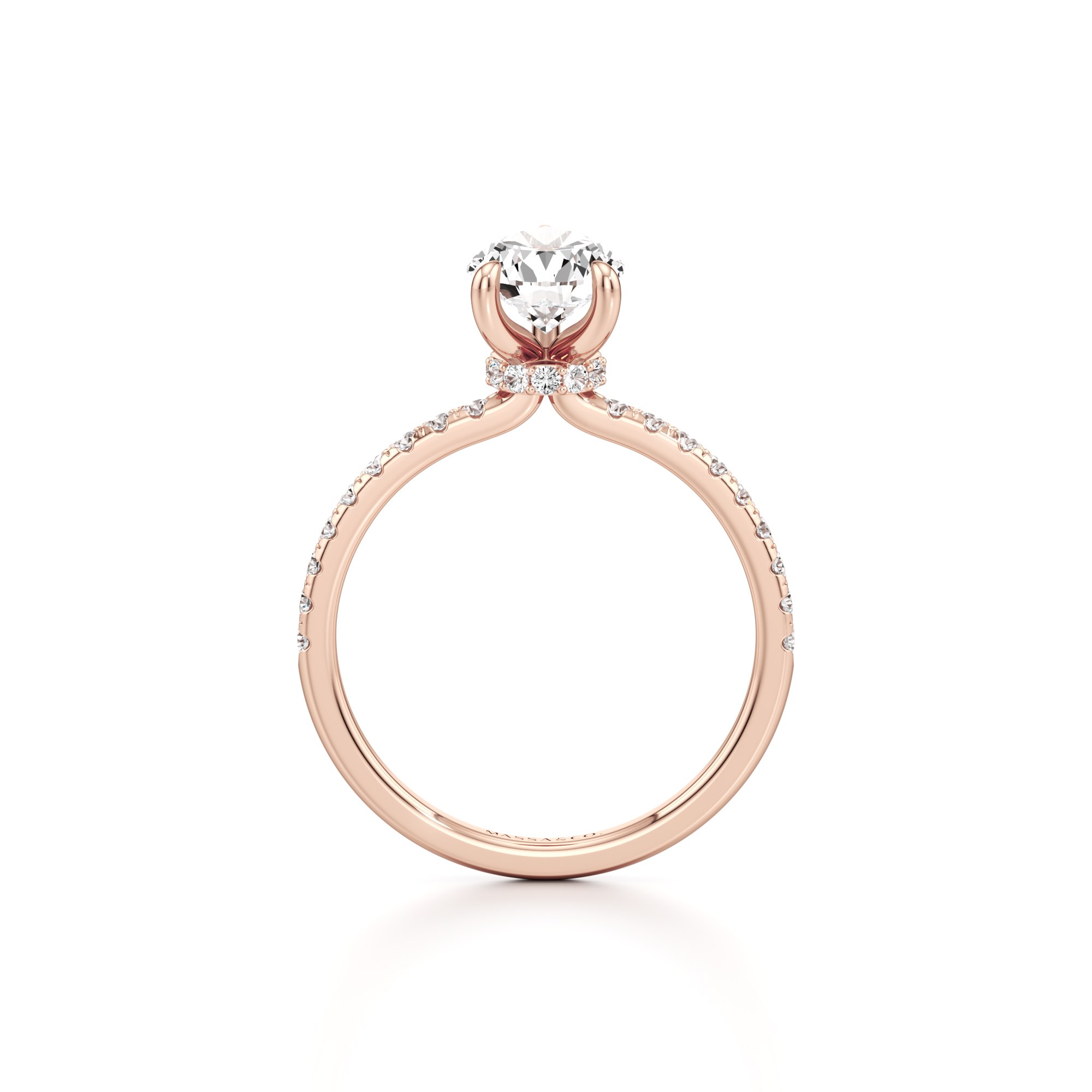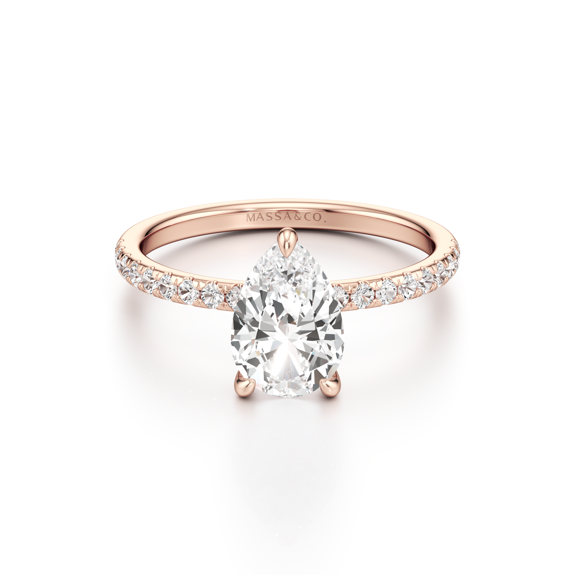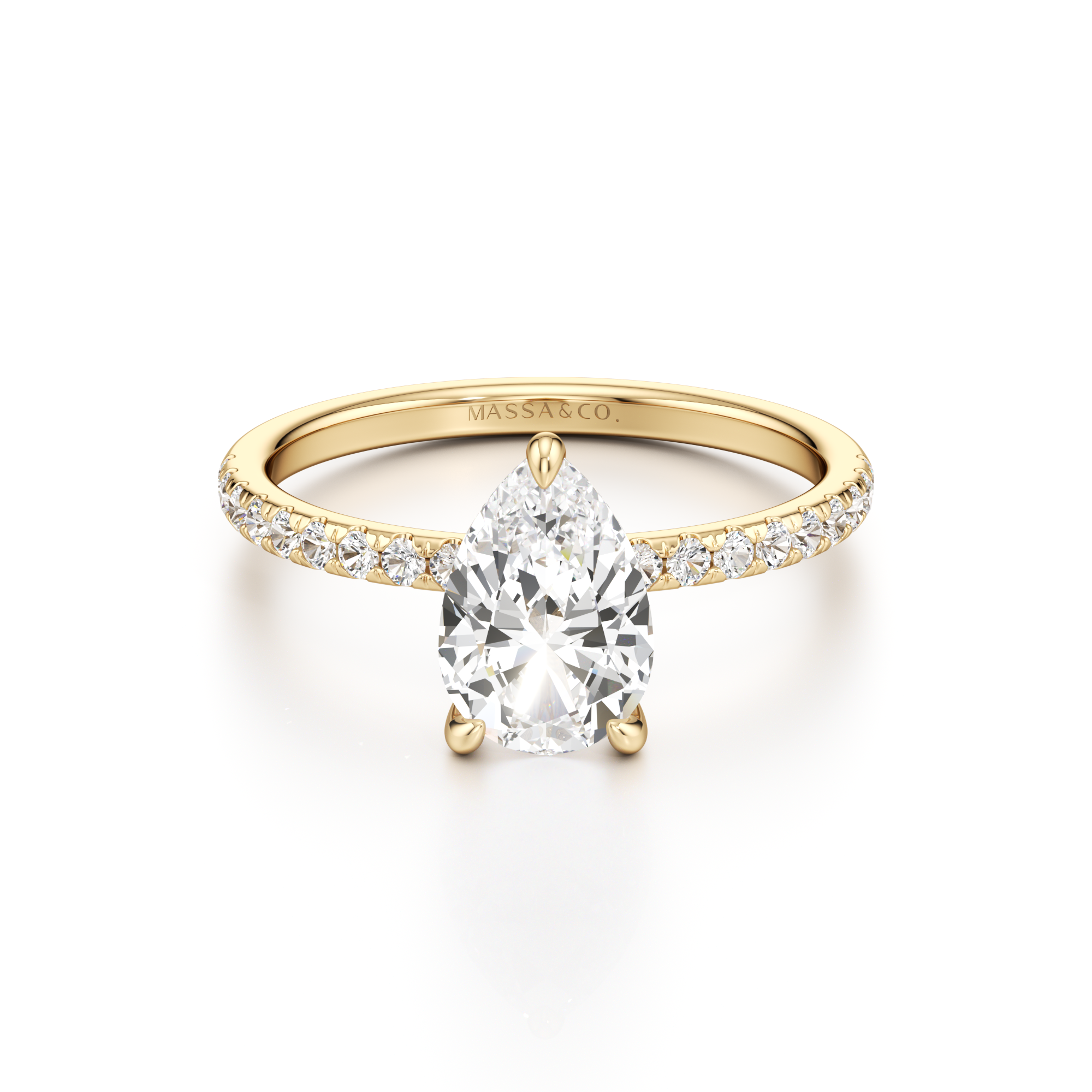 Pear-cut Secret Halo Engagement Ring with a Pavé Diamond Band